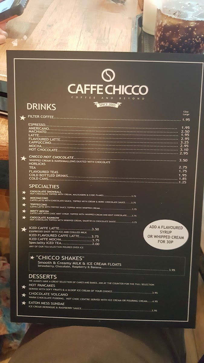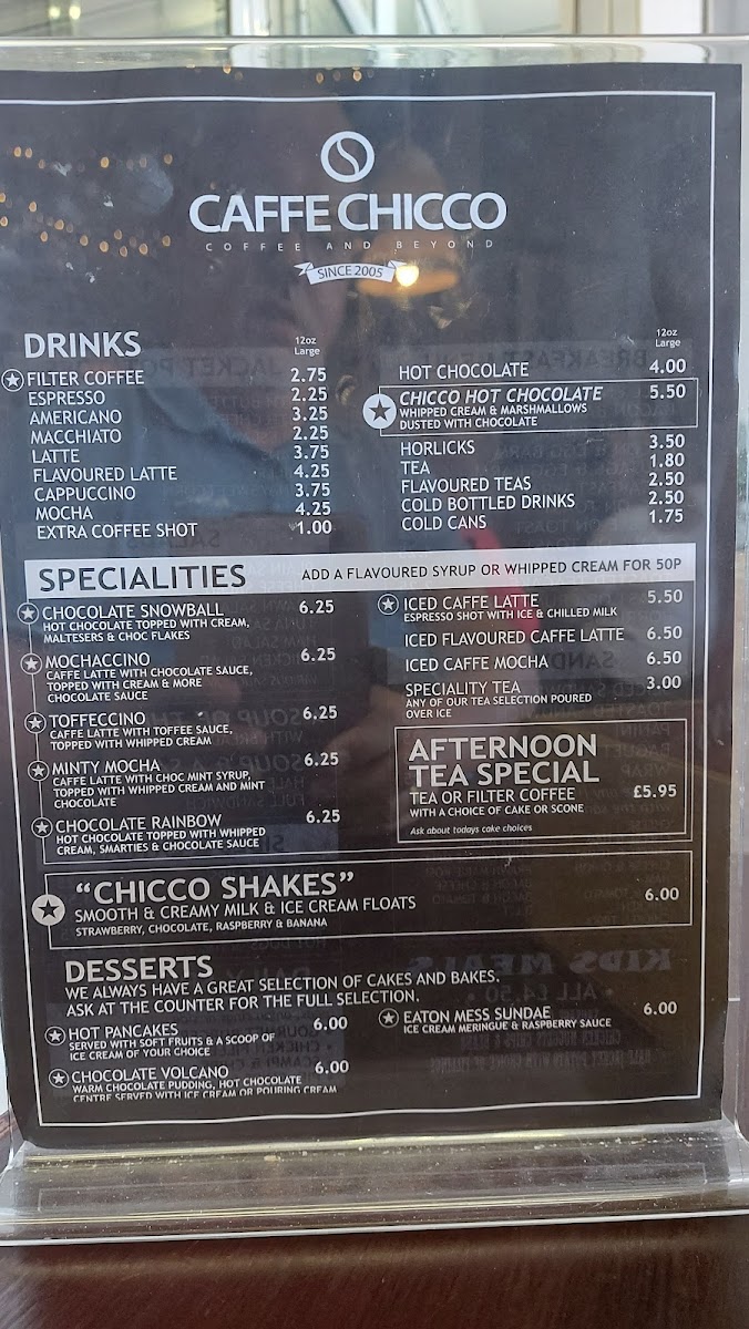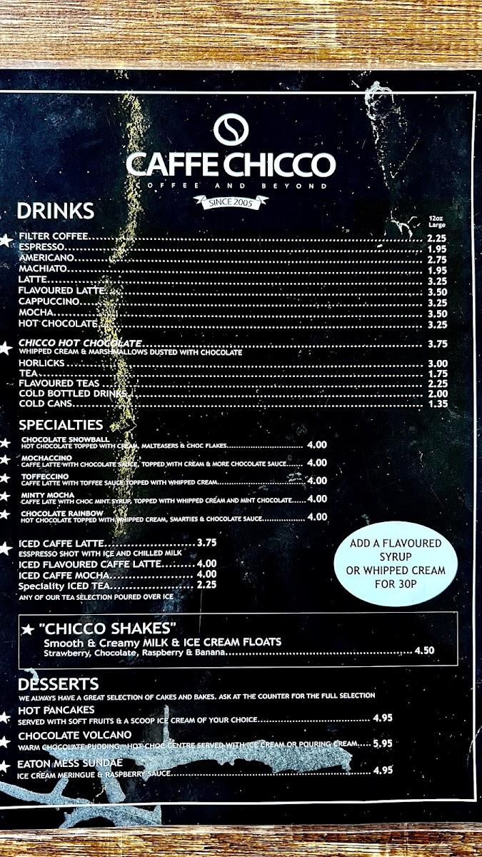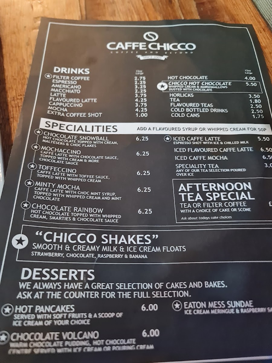 The menu at Caffe Chicco is a casual delight, offering a variety of comforting options that cater to different cravings. Start your day off right with a hearty Jacket Potato topped with your choice of butter, cheese, coleslaw, beans, chili, or tuna and sweetcorn. For those who prefer a light lunch, the café serves up a selection of toasty sandwiches and sides like the irresistible Chip Butty or Cheesy Chips that will surely tantalize your taste buds.